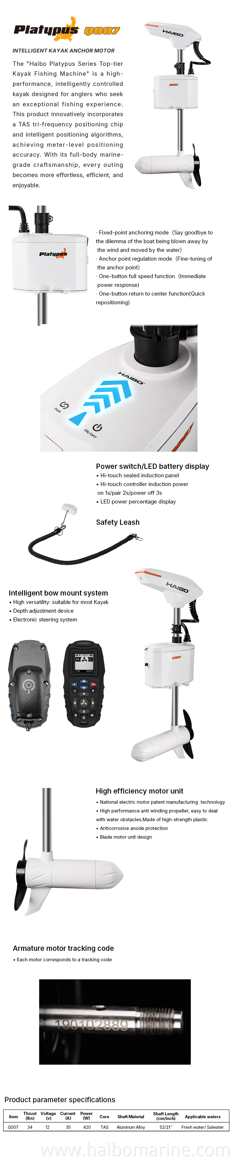 PLATYPUS Series Kayak Anchor Motor-Q007
